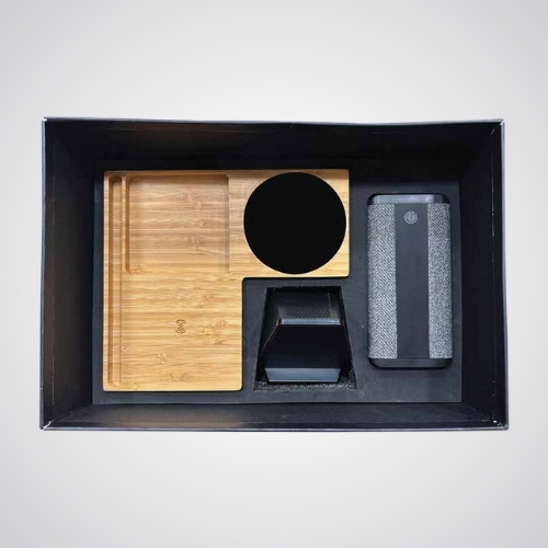 An eco-conscious combo of wireless power and premium sound—includes a 3-in-1 wireless charger, jute-finished powerbank, and Bluetooth speaker with wireless charging. Ideal for gifting or daily tech needs.