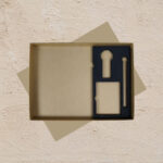 Customizable Compartments: Designed with tailored slots to securely hold a standard-sized notebook, pen, keychain, and card holder, preventing movement and ensuring safe storage.