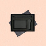 Customizable Compartments: Designed with tailored slots to securely hold a standard-sized card holder, keychain, and pen, preventing movement and ensuring safe storage.