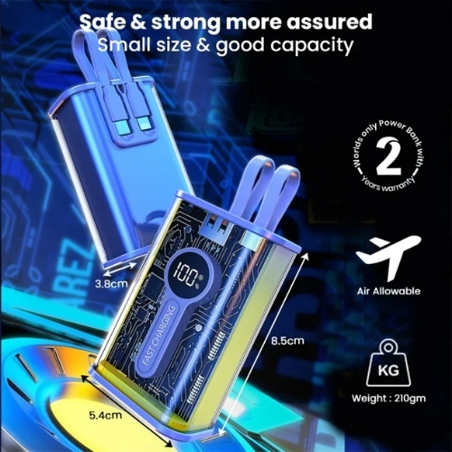 The EN C Power Bank is a powerhouse packed into a sleek and portable design, featuring a robust 10,000mAh Li-polymer battery (37Wh) to keep your devices charged throughout the day. Equipped with multiple outputs including USB-A, Type-C, Lightning, and an integrated Type-C cable, this device supports a wide range of fast-charging protocols. Enjoy up to 25W max output via Type-C, delivering fast and efficient charging for smartphones, tablets, and other electronics. With intelligent power distribution, it ensures optimal performance while preventing overcharging and overheating. Ideal for power users, travelers, and professionals who need reliable and versatile on-the-go charging.