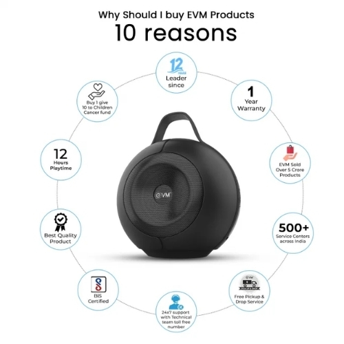 The EnLumina Bluetooth Speaker (EVM-BTS-201) combines performance and portability in a sleek design. Featuring Bluetooth 5.3 for stable and fast connectivity, it delivers 12W RMS output (6W x 2) through a powerful 6.6 cm speaker driver. Its 2000mAh battery offers up to 12 hours of uninterrupted playtime, making it ideal for home, office, or outdoor use. Compact in size (17 x 10.2 x 14.5 cm) and lightweight at 450 grams, EnLumina is designed for easy transport without compromising on sound quality.